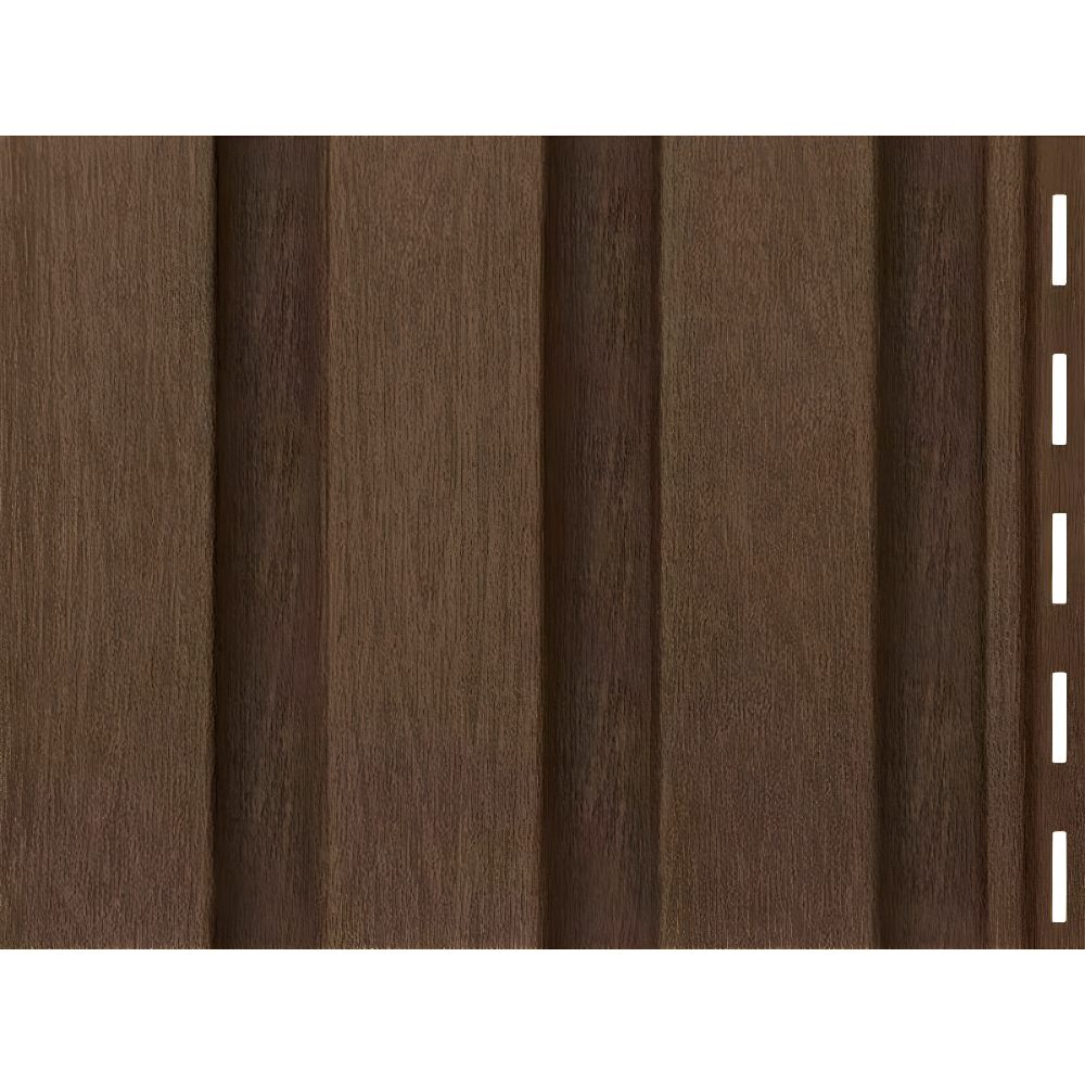 Сайдинг Timberblock Рейка фасадная — это панель с вертикальным монтажом, состоящая из трёх узких планок с чёткими гранями. Она точно имитирует текстурированную деревянную поверхность, создавая эффект лёгкости, ритма и аккуратности на фасаде.