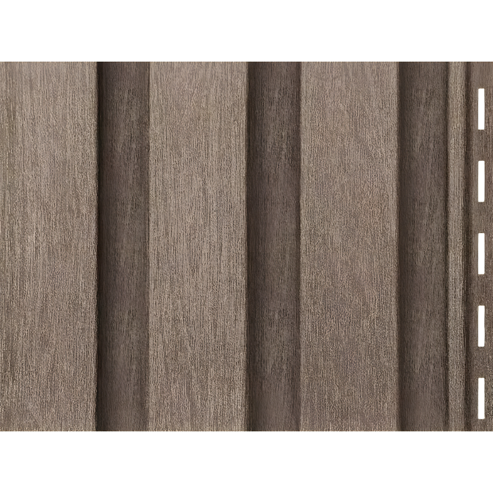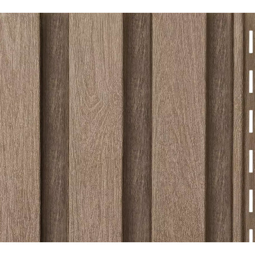 Сайдинг Timberblock Рейка фасадная — это панель с вертикальным монтажом, состоящая из трёх узких планок с чёткими гранями. Она точно имитирует текстурированную деревянную поверхность, создавая эффект лёгкости, ритма и аккуратности на фасаде.